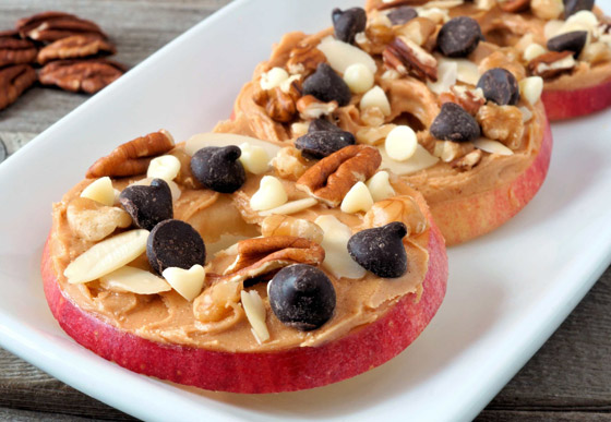 4. شرائح التفاح مع زبدة اللوز: يمكن أن تكون شرائح التفاح وجبة خفيفة رائعة في وقت متأخر من الليل، وخاصة عند دمجها مع زبدة اللوز. هذه الوجبة توفر توازنا جيدا بين العناصر الغذائية الكبرى الثلاثة (أي الدهون والبروتينات والكربوهيدرات).
