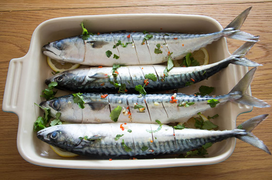 1. الماكريل: إن أسماك الماكريل الزيتية غنية بالبروتين وتنتشر في البحر الأبيض المتوسط وأجزاء من المحيط الأطلسي ولها نكهة غنية ويمكن طهيها بسرعة على الشواية أو في الفرن أو في مقلاة. يوفر سمك الماكريل عناصر غذائية مهمة إذ يحتوي كل 100 غرام على حوالي 500% من المدخول اليومي الموصى به من فيتامين B12 و130% من السيلينيوم. بالإضافة إلى ما يصل إلى 4580 مليغرامًا من أوميغا-3 في شكل EPA وDHA.