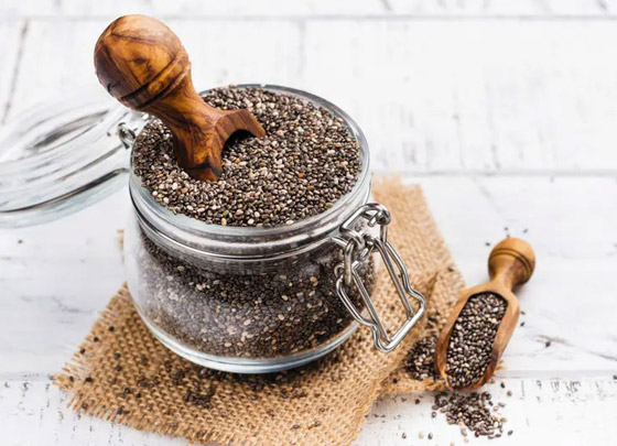 4. بذور الشيا: تعتبر هذه البذور الصغيرة من أفضل الأطعمة التي تستخدم في وصفات الإفطار والحلوى لأنها غنية بالبروتين والأحماض الأمينية الأساسية والمعادن مثل السيلينيوم والمنغنيز والمغنيسيوم. وتحتوي على 50-50 مليغراما من أوميغا-3 لكل 28 غرامًا، على شكل حمض ألفا لينوليك.