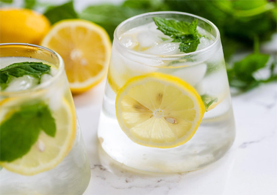 1. ماء الليمون والنعناع: يساعد الليمون على تطهير الجهاز الهضمي، بينما يساعد النعناع في الهضم. يشكل هذا المزيج مشروبًا منعشًا للتخلص من السموم لبدء فقدان الدهون.