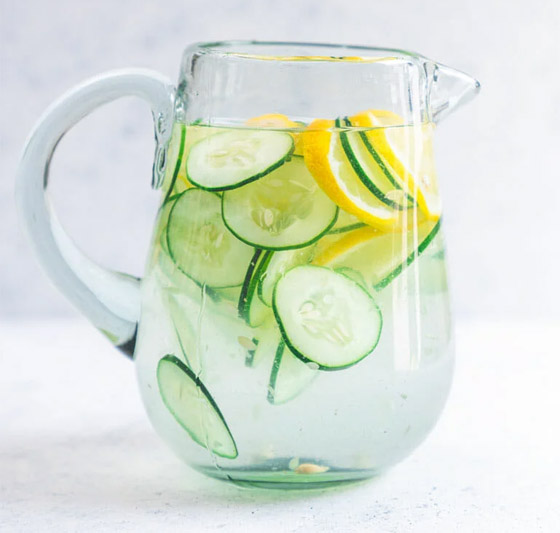 2. ماء الخيار والليمون: إن الخيار منخفض السعرات الحرارية ويرطب الجسم، بينما يعزز الليمون عملية التمثيل الغذائي. معًا، يشكلان مشروبًا مبردًا للتخلص من دهون البطن.