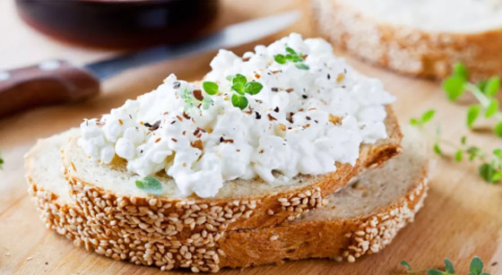 ـ الجبن القريش غنية بمحتواها من البروتين لإصلاح كتلة العضلات وما يمكن أن تفقده خلال ساعات الصيام.