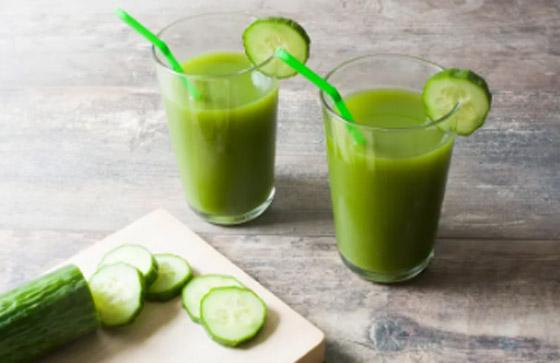 يعد عصير الخيار مفيدًا بدرجة كبيرة لترطيب الجسم. يحتوي على أكثر من 90% من الماء، مما يُحافظ على ترطيب الجسم ويساعد على التخلص من السموم. كما يُهدئ عصير الخيار البشرة ويُقلل الانتفاخ ويُحسّن مظهرها بفضل احتوائه على السيليكا وفيتامين K.
