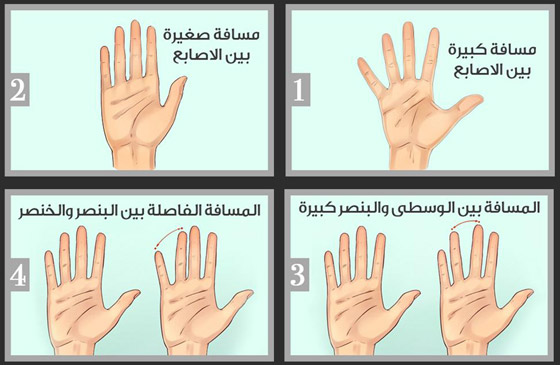 يرغب الكثير من الأشخاص في تخطي مظهرهم الخارجي واكتشاف أسرار شخصياتهم وأعماقها. وقد يلجؤون إلى طرق مختلفة مثل استشارة المدربين النفسيين. إلا أنّ أفضل الطرق للتعرف إلى الذات هي النظر في المرآة. فملامح الوجه وإشارات الجسم تقول أكثر مما يمكن تصوره عن شخصية صاحبها. ومن أبرز هذه الإشارات المسافة الفاصلة بين أصابع اليدين.