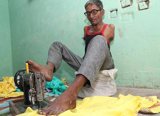 تحد رجل حالته الصحية وجميع من حوله، وأصبح خياطا محترفا رغم فقدانه ذراعين. ولد مادان لال (45 عاما) في مدينة هاريانا الهندية بدون ذراعين، وكان لديه مخاوف أنه لن يحصل على تعليم مناسب أو أي فرصة لكسب العيش. لكنه عزم على شق طريق لنفسه متحديا الجميع، حيث وجد شغفه في الخياطة، ولحسن حظه عثر على خياط على استعداد لتعليمه المهنة، وأصبح الآن خياطا معروفا يبهر الجميع بملابسه باستخدام قدميه.