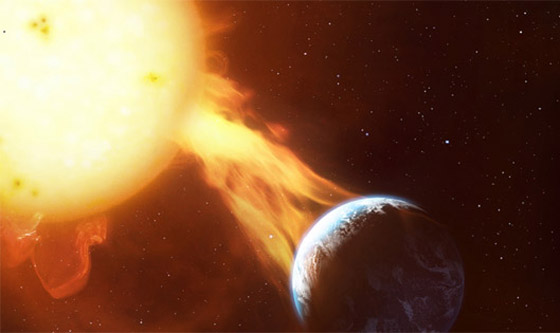 ويشير يازيف، إلى أن التوهجات الشمسية بحد ذاتها لا تشكل خطورة على الإنسان. ولكن أحيانا تسبب ما يسمى بقذف الكتل الإكليلية، عندما تطلق القوى الكهرومغناطيسية على الشمس عددا كبيرا من الجسيمات المشحونة (البلازما) إلى الفضاء. ووفقا له، إذا كانت الكتلة الإكليلية متجهة نحو الأرض فبعد يومين تصطدم الجسيمات المشحونة بالغلاف المغناطيسي للأرض ما يؤدي إلى اضطرابه، ويظهر هذا على شكل عاصفة جيومغناطيسية.
