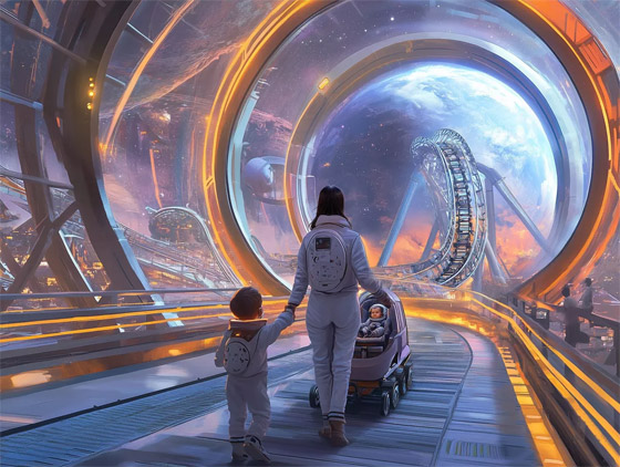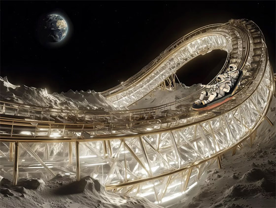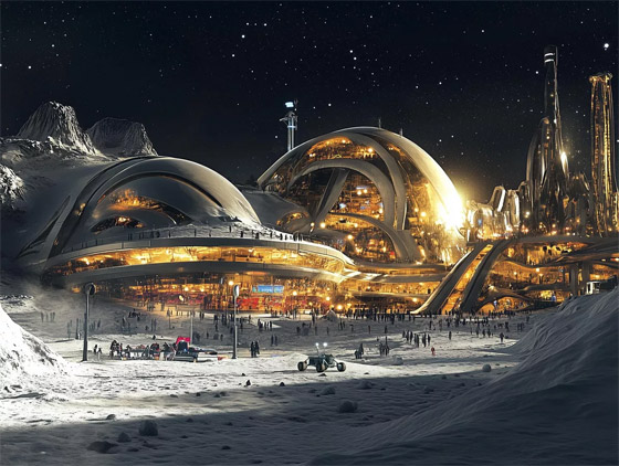 - صورة لمدخل مدينة الملاهي على القمر بعيون الذكاء الاصطناعي.