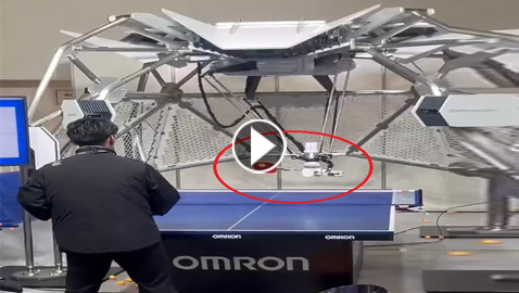 روبوت ياباني عملاق يمارس كرة الطاولة البينغ بونغ مع إنسان.. ..