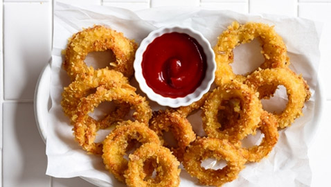 طريقة عمل حلقات البصل المقلية كما في المطاعم: لذيذة ..